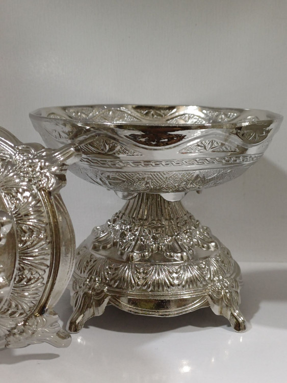جنس زاماک (آلیاژ مقاوم و براق) باعث شده این پیاله علاوه بر زیبایی، دوام بالایی هم داشته باشه. طراحی پایهدار اون، جلوهای لوکس به سفره هفتسین، پذیرایی و دکور منزل میده.