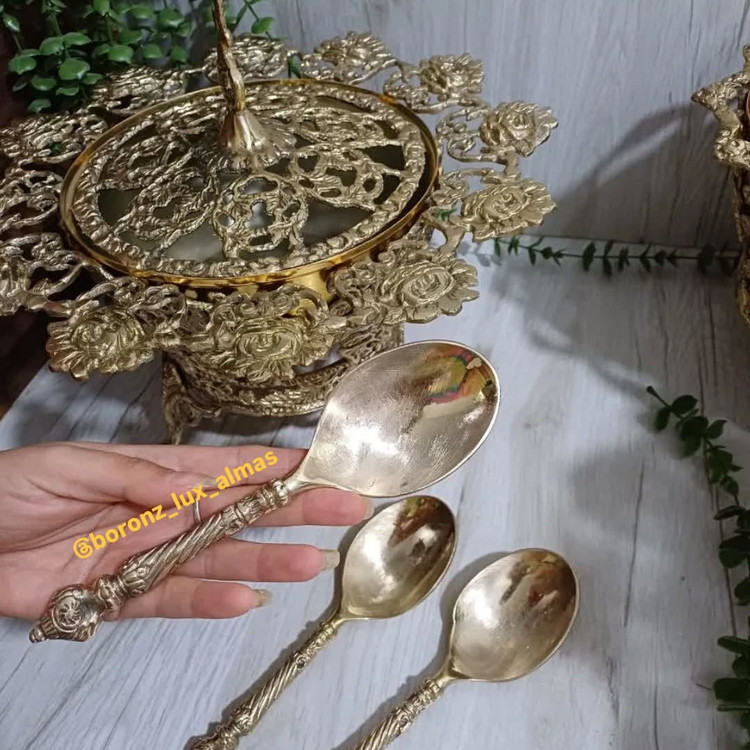 زیبایی در جزئیات ست قاشقهای برنجی با طراحی ظریف و جذاب، مناسب برای پذیراییهای خاص و تزئین میز شما. ساخته شده از بهترین مواد برنجی طراحی منحصربهفرد و ماندگار برای اطلاعات بیشتر و سفارش، دهید یا با شماره درجشده در بیو تماس بگیرید. @boronz_lux_almas @boronz_lux_almas سرویس لوکس قاشق آجیل خوری با طراحی زیبا #سرویس_پذیرایی