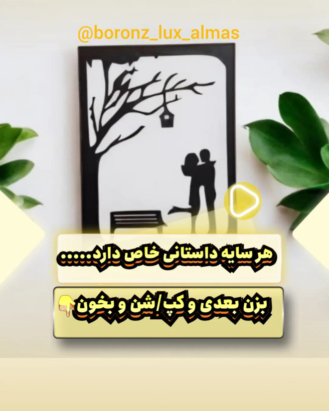 هر سایه، داستانی خاص دارد سایز ۳۰ در ۴۰ ضخامت فرم ۴ سانت تابلو سایه "هر داستان عاشقانهای، یک تابلو دارد. شما چه لحظهای از عشق رو به یاد دارید که دوست دارید در هنر ثبت بشه؟ @boronz_lux_almas #برنزلوکس